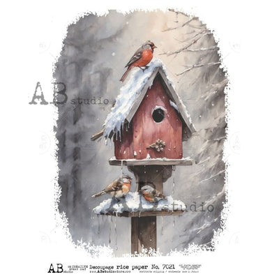 Winter Birdhouse with Birds Decoupage Rice Paper A4 7021 by AB Studio