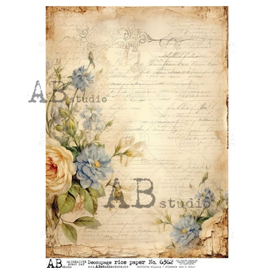 Floral Vintage Script Decoupage Rice Paper A4 6362 by AB Studio