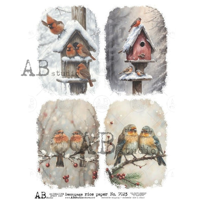 Cardinals and Finches in Snow Decoupage Rice Paper A4 7023 by AB Studio