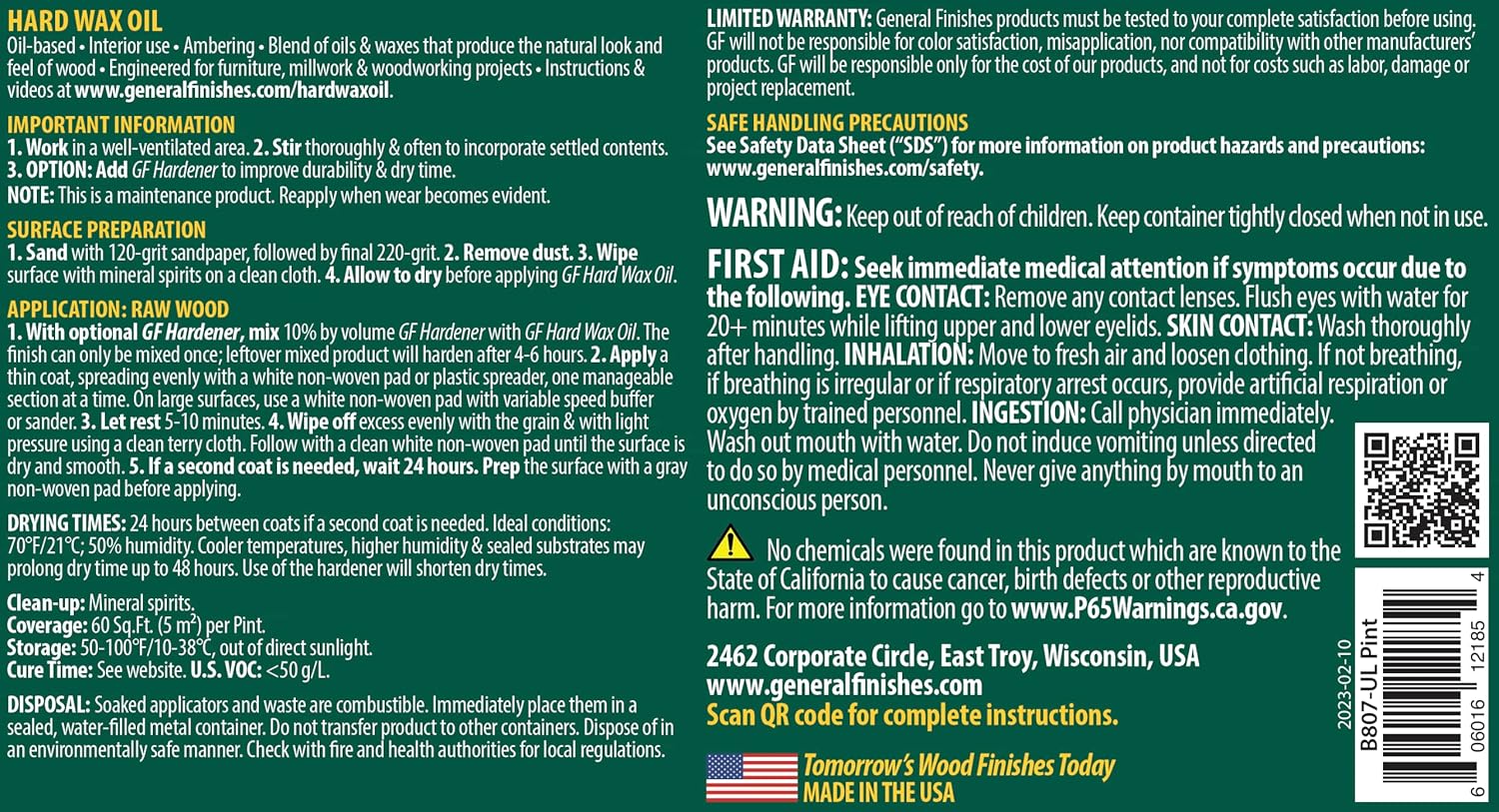 This is General Finishes’ easiest finish ever and the best oil and wax finish on the market. Hard Wax Oil is a high‐quality urethane‐solids polymer in a blend of oil & wax that enhances the natural look of wood.