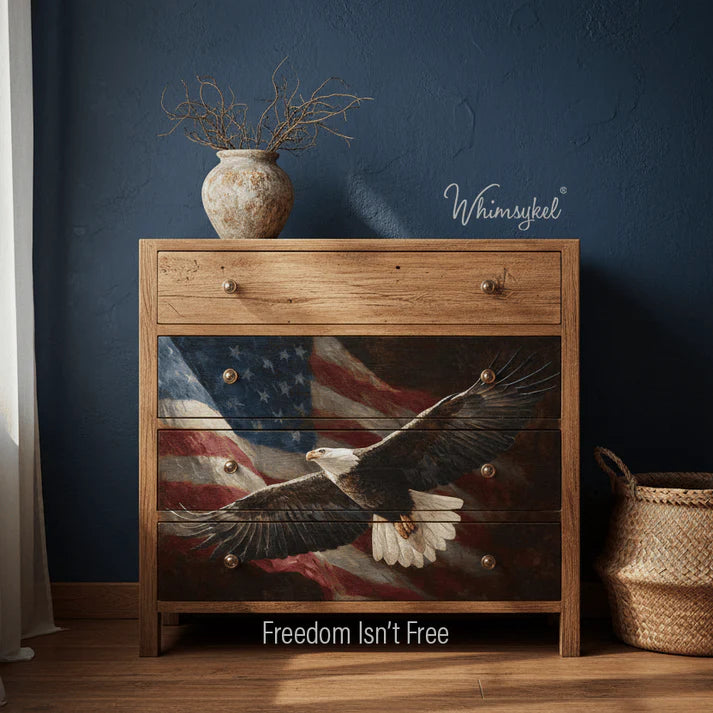 As part of the Wild Chapters collection, Freedom Isn't Free was created to honor the 250th anniversary of the United States, a milestone that calls for art with meaning. It brings bold patriotic presence to furniture makeovers, statement pieces, and mixed-media projects, and is made for creators who want their work to say something. Ideal for accent tables, blanket chests, shadow boxes, and gallery walls that deserve more than a pattern.